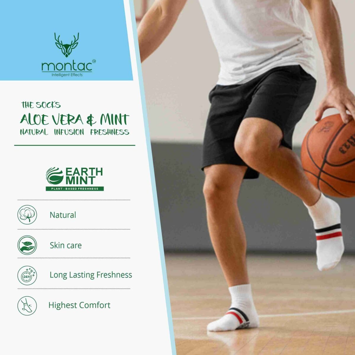 Experience luxury and nature in every step with Montac Aloe Vera & Mint Men’s Half Terry Cushion Low Ankle Socks.