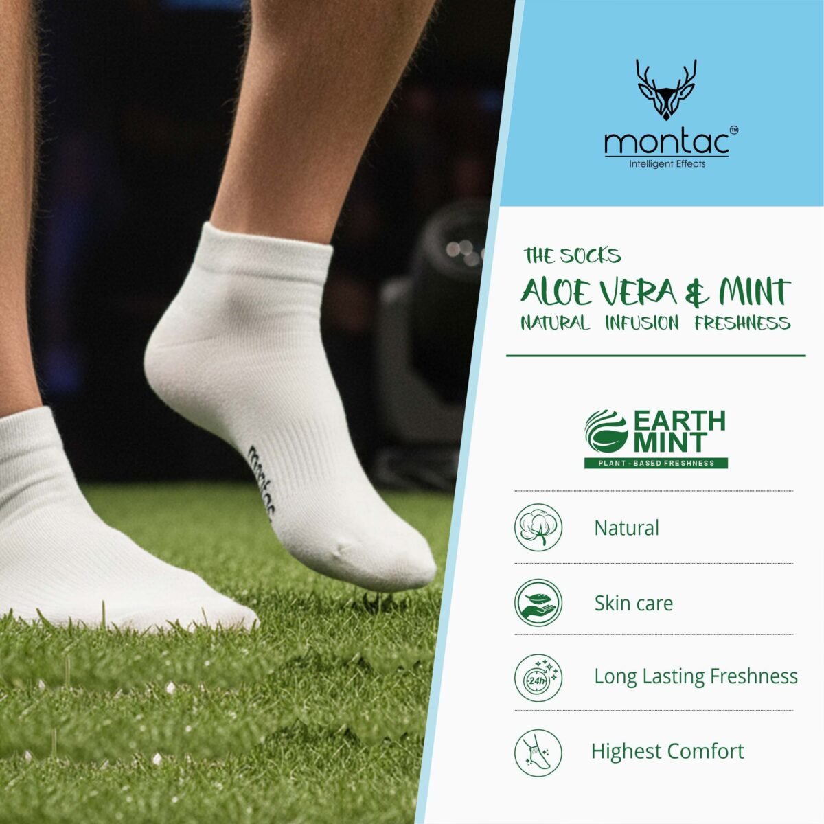 Experience luxury and nature in every step with Montac Aloe Vera & Mint Men’s Half Terry Cushion Low Ankle Socks.