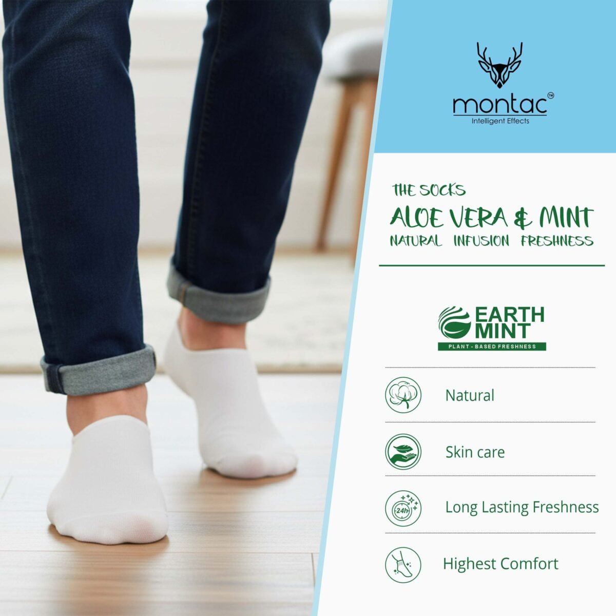 Montac Aloe Vera & Mint Non Terry No Show Socks, Natural Infusion Freshness, Cotton Socks, for Men, Free Size, Pack of 3