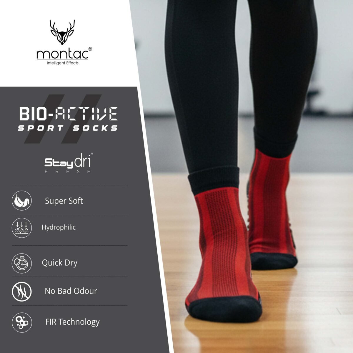 Montac BIO-ACTIVE Sport Socks, Half Terry, Unisex, free Size, Ultra Lightweight, FAR Infrared Technology, Stay Dry Fresh, No Bad Odour, Pack of – 2