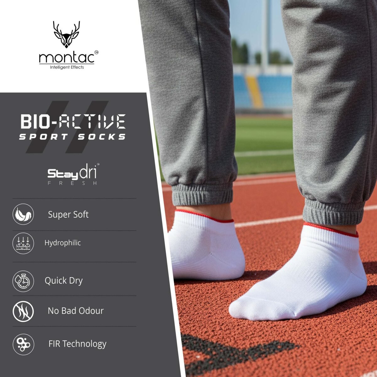 Montac BIO-ACTIVE Sport Socks, Low Ankle Half Terry, Unisex, free Size, Ultra Lightweight, FAR Infrared Technology, Stay Dry Fresh, No Bad Odour, Pack of – 2