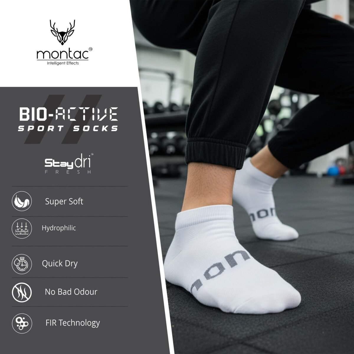 Montac BIO-ACTIVE Sport Socks, Low Ankle Half Terry, Unisex, free Size, Ultra Lightweight, FAR Infrared Technology, Stay Dry Fresh, No Bad Odour, Pack of – 2