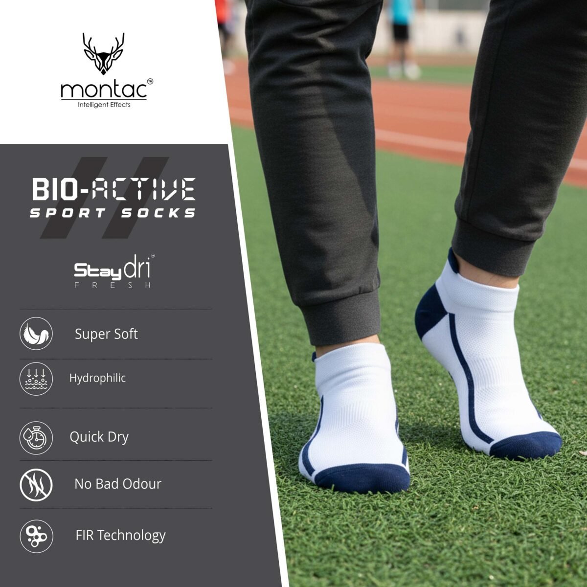 Montac BIO-ACTIVE Sport Socks, Ankle Non Terry, Unisex, free Size, Ultra Lightweight, FAR Infrared Technology, Stay Dry Fresh, No Bad Odour, Pack of – 3