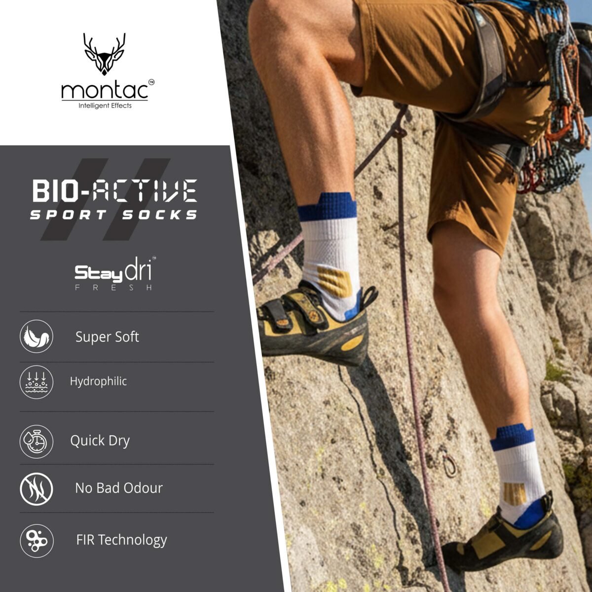 Montac BIO-ACTIVE Half Terry Ankle Sport Socks, Unisex, free Size, Ultra Lightweight, FAR Infrared Technology, Stay Dry Fresh, No Bad Odour, Pack of – 2