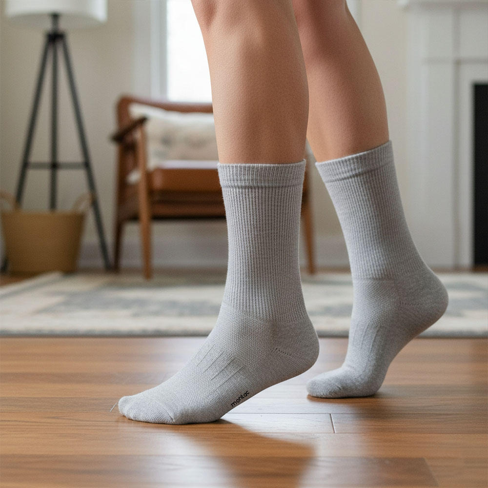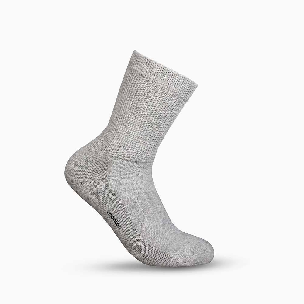 Montac Diabetic socks (therapeutic Version) is made with a synergetic blend of fibres like Combed Cotton, Nylon, Polyester and Elastane. This synergetic blend of fibres gives the patron a high level of protection and comfort.