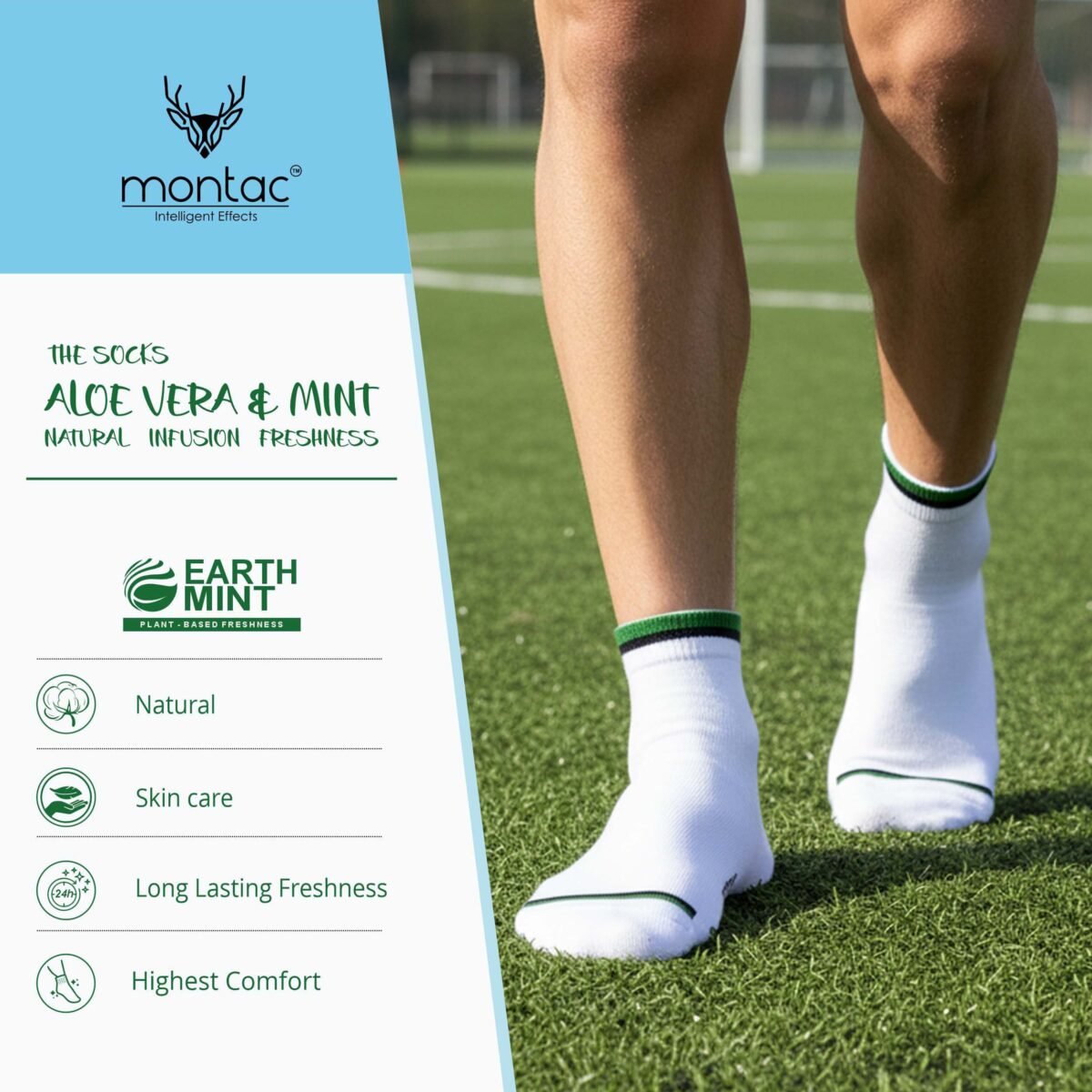 Experience luxury and nature in every step with Montac Aloe Vera & Mint Men’s Half Terry Cushion Non Terry Low Ankle Socks.