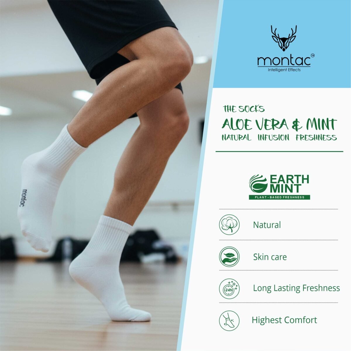 Experience luxury and nature in every step with Montac Aloe Vera & Mint Men’s Half Terry Cushion Ankle Socks.