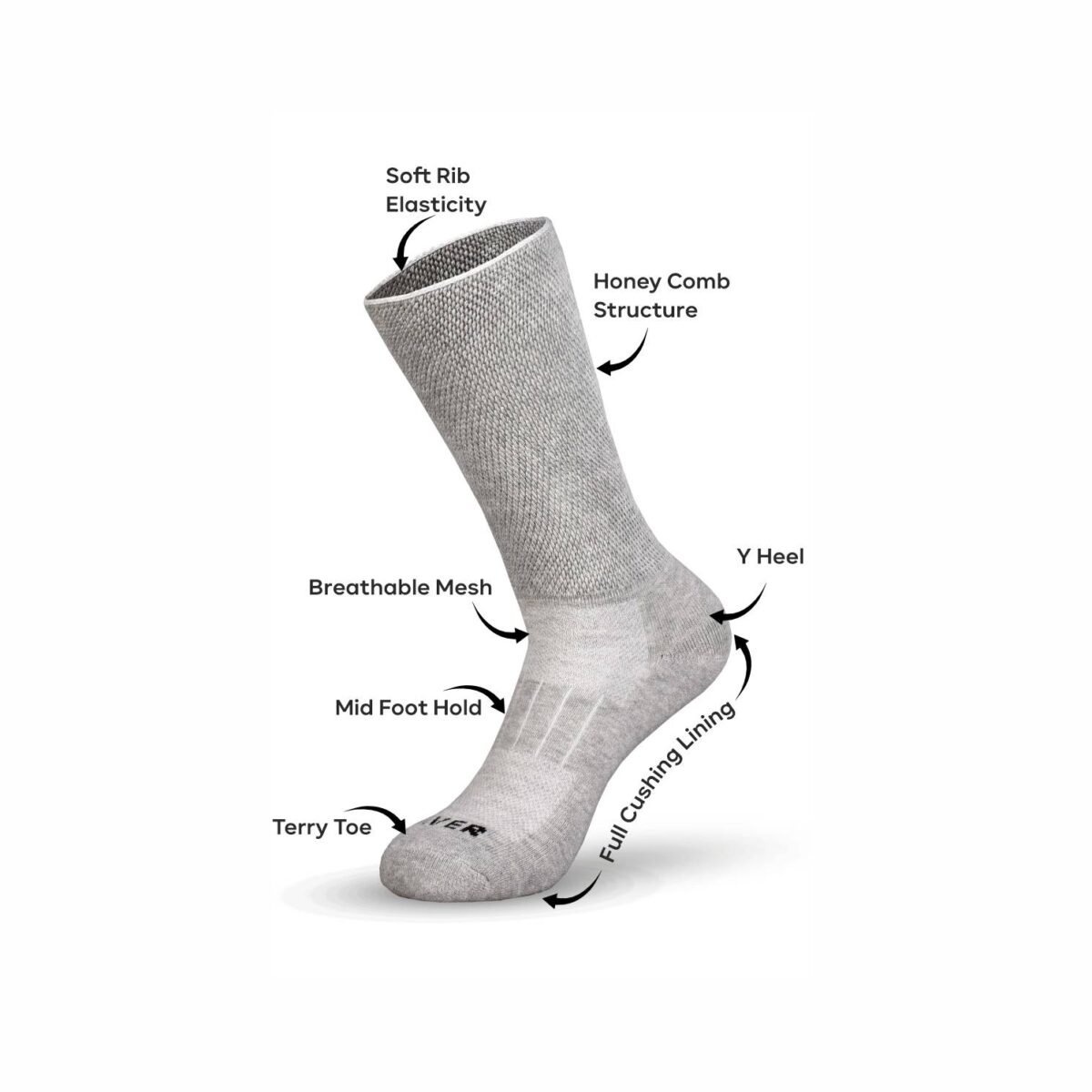 Montac Half Terry Full Length Silver Diabetic Socks for Men and Women | Soft, Cushioned Support with Non-Binding Top | Ideal for Sensitive Feet and Diabetic Care | Pack of 3